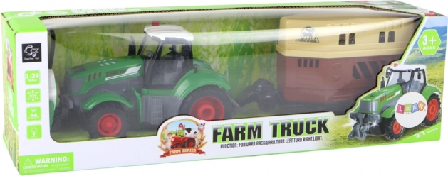 Élje át a farmkalandokat a távirányítós traktorral 1:24 méretarányban. A valósághű, zöld kivitel, az üvegezett fülke és a levehető állatszállító pótkocsi nagyszerű teret ad a fantáziadús játéknak. A traktor LED kabinvilágítással rendelkezik a még autentikusabb élményért.