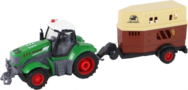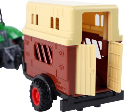 A barna árnyalatú pótkocsi könnyen le- és visszacsatlakoztatható, ami bővíti a farmjátékok és jelenetek lehetőségeit.