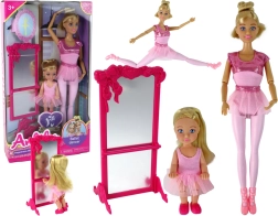 Fedezd fel a varázslatos balettvilágot az ANLILY szettel – balerina anyuka és kislánya összeillő rózsaszín jelmezekben. A készlet része egy nagy, rózsaszín tükör is a pózok és fellépések gyakorlásához. Ez a szett támogatja a kreatív játékot, a képzelőerőt és a finommotorikát a mozgatható végtagoknak és a részletgazdag kiegészítőknek köszönhetően.