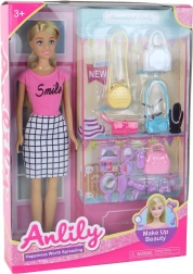 Az ANLILY baba stílusos ruhában és kiegészítőkkel érkezik, melyekkel a gyerekek saját trendeket alkothatnak. A smink- és hajformázó tartozékok segítségével könnyedén készíthetnek egyedi megjelenést, amelyet hangulat vagy alkalom szerint kiegészíthetnek az 5 kézitáska egyikével.