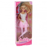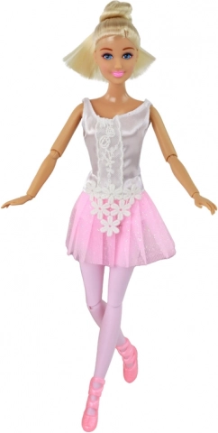 A kontyba fogott szőke haj és a mozgatható végtagok lehetővé teszik a balettpozíciók beállítását és saját koreográfiák megalkotását.