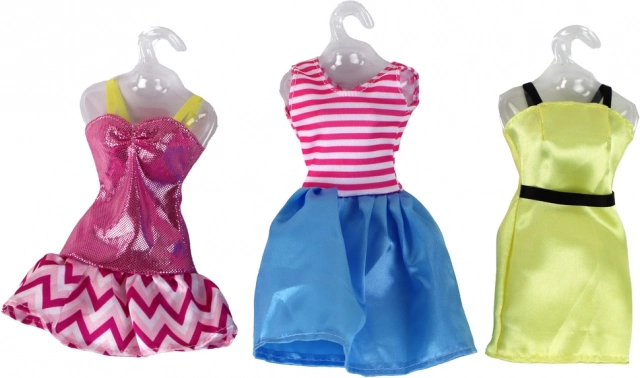 - Divatos szórakozás: 3 különböző ruha a baba átöltöztetéséhez és 3 vállfa a szárításhoz.