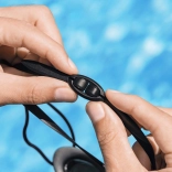 A puha szilikon szemkagylók biztonságosan illeszkednek az arcra és megakadályozzák a víz beszivárgását. Az állítható, gyorsszabályozású szilikon pánt és a kényelmes orrnyereg pontos és stabil illeszkedést nyújt minden tempónál.