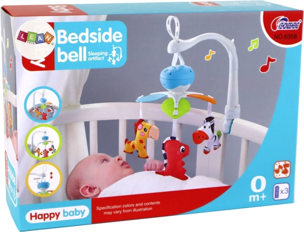 A mi gyönyörű kiságy feletti körhintánk nemcsak szórakozást, hanem érzékszervi stimulációt is nyújt gyermekének. Segítségével szabályozható a körhinta magassága. A körhintán három plüss barát lóg - zebra, zsiráf és piros dinoszaurusz, akik elindítás után forognak, ami leköti és egyben megnyugtatja a gyermeket.