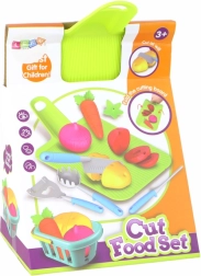 A mi gyerekkészletünkkel a zöldségek vágására deszkával és kiegészítőkkel kiváló módja a gyermekek képességeinek és fantáziájának fejlesztésére. A készlet négyféle zöldséget tartalmaz: krumpli, répa, hagyma és paradicsom, amelyeket a mellékelt műanyag késsel biztonságosan lehet vágni. Kiegészül egy bevásárlókosárral és hasznos kiegészítőkkel, mint a tésztaszedő kanál, hámozó és késélező.