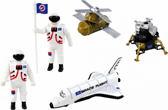 Két űrhajós figura kiegészítőkkel ösztönzi a történetmesélést a felfedezésről és az együttműködésről idegen bolygókon.