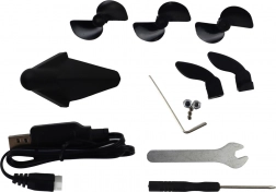 A készlet tartalmaz továbbá kiegészítőket is: akkumulátorkábelt, motorcsónak-állványt a szárazföldi stabilitáshoz, két cserélhető hajócsavart és két cserélhető kormánylapátot.