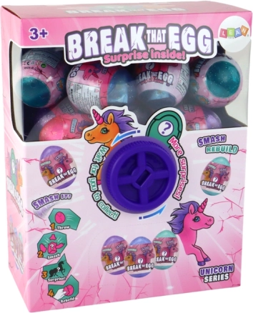 Varázslatos unikornisokat tartalmazó tojáskészlet, amely interaktív és meglepő lehetőségeket kínál a gyerekek számára, akik szeretnek elmerülni a fantázia világában. A tojások speciális, sorsolós mechanizmussal ellátott dobozban vannak elhelyezve, amely jobbra fordítva egy tojást ad ki, meglepetésszerűen lepve meg a gyerekeket.
