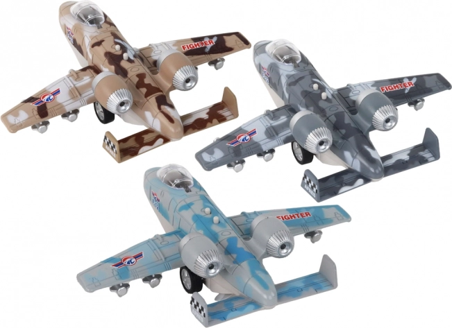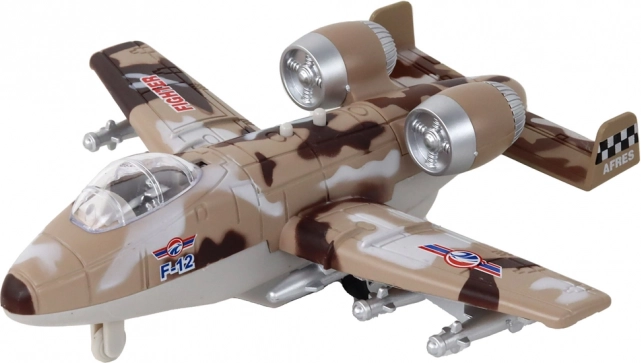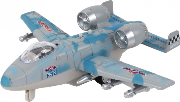 A fény- és hanghatások valósághű játéktapasztalatot nyújtanak a katonai repülőgéppel.