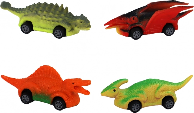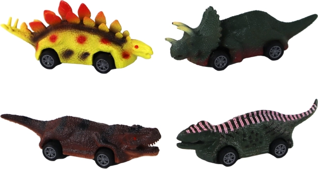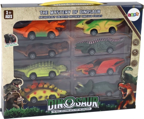 A készlet nyolc különböző dinoszauruszos kisautót tartalmaz különböző színekben és formákban, beleértve a triceratopsot és stegosaurust, ami változatos és szórakoztató játékot biztosít.