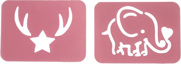 Az elefánt- és csillagmintás sablonok lekerekített sarkokkal és egyszerű formákkal készültek, hogy a gyerekek könnyen használhassák körmön és papíron is.
