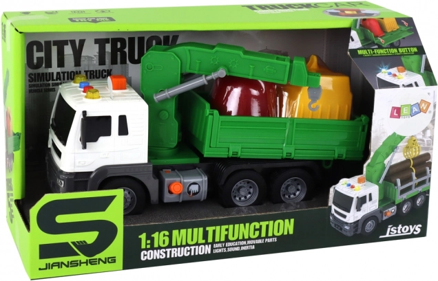 Ez a zöld gyerek szemetesautó daruval rengeteg akciót és tanulást kínál. A súrlódó meghajtásnak köszönhetően elég hátrahúzni az autót és elengedni – magától előre indul. A hangeffektek (duda, motorindítás, tolatás) fokozzák a valósághű élményt és fejlesztik a képzelőerőt.