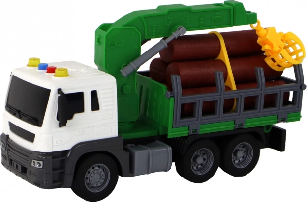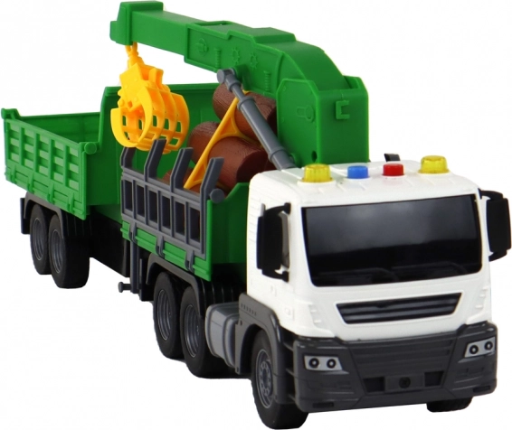 - Teherautó daruval, utánfutó, 6 db műanyag rönk