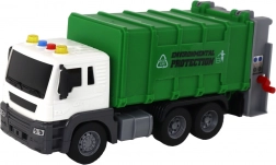 Zöld szemétszállító teherautó daruval, súrlódásos meghajtással 1:16