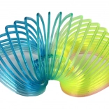 Az élénk kék, zöld és sárga átmenetek csillogással kiegészítve látványos játékká és asztali dekorációvá teszik a rugót.