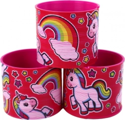 Fedezze fel a kultikus rózsaszín rugót varázslatos egyszarvú- és szivárványmotívummal kompakt, 6 cm-es méretben. Ideális ajándék gyerekeknek és felnőtteknek, akik imádják a színes, mesés akcentusokat.
