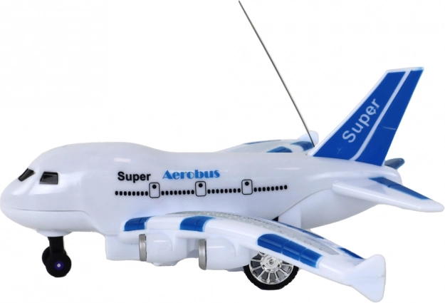 Az 'Aerobus' RC repülőgép modell tökéletes választás a kis repülésrajongók számára. Az elegáns fehér karosszéria kék részletekkel nemcsak stílusos megjelenést biztosít, hanem valósághű élményeket is. A gyerekek élvezhetik a szárnyakon lévő fényhatásokat, amelyek beragyogják a játékot, valamint a élethű hangokat, amelyek fokozzák az igazi repülés érzetét.