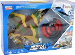 A katonai álcázású RC repülőgép valósághű megjelenést kínál a zöld, sárga és barna színek kombinációjának köszönhetően. Része a távirányítás, amely teljes kontrollt biztosít a repülőgép mozgása felett, lehetővé teszi az zökkenőmentes manőverezést előre és hátra. A forgó kerekek segítségével a repülőgépet jobbra és balra is irányíthatjuk.