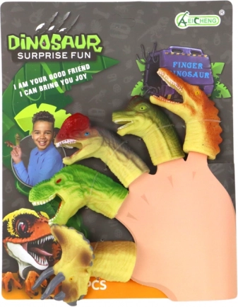 - 5 gumiból készült dinoszaurusz ujjra (különböző fajták)