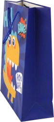 Adj stílust ajándékaidnak a kék papír dísztasakkal, vidám dinoszaurusz mintával. A minőségi, finoman csillogó papír és az erős zsinórfülek biztonságos szállítást és egyben szép prezentációt biztosítanak.