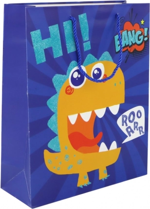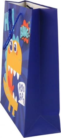 Ez a játékos dínó mintás ajándéktáska vidám és egyedi megjelenést kölcsönöz bármilyen ajándéknak. Az univerzális sötétkék alap elegáns hatású, míg a karakteres grafika főként a gyerekeket szólítja meg. A táska számos alkalomra alkalmas – születésnapoktól a gyerekzsúrokig.