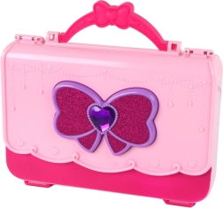 Könnyű és kompakt koffer csillogó masnival, amelyben minden kiegészítő rendezetten elfér, így utazáshoz és otthoni játékhoz is ideális.