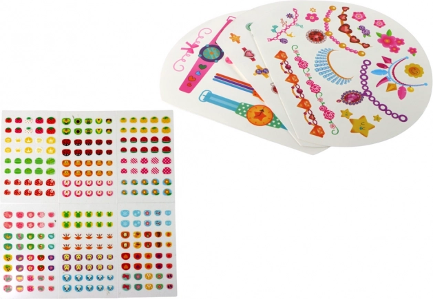 A műanyag betét eltávolítása után előkerül egy ideiglenes tetoválás készlet órák, nyakláncok, fülbevalók és gyűrűk motívumaival – tökéletes a játékos kísérletezéshez elköteleződés nélkül. A koffer támogatja a kreatív játékot, a finommotorika és a ízlés fejlődését.
