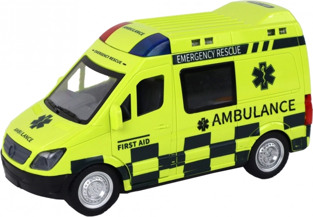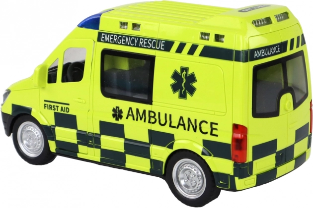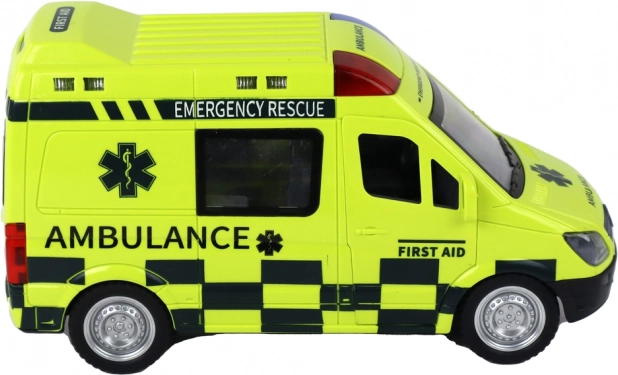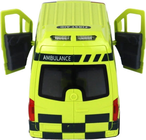 A mentőautó villogó fényekkel és valósághű szirénahangokkal rendelkezik, amelyek hitelességet adnak a játéknak.