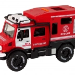 Terepjáró Tűzoltóautó 1:14 méretarányban ideális játék a fiatal felfedezőknek. Nyitható ajtókkal, fény- és hanghatásokkal izgalmas szórakozást nyújt különböző felületeken.