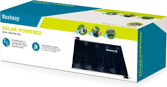 Fejezze be az energia pazarlását a medence víz melegítésére. Bestway napelemes panel segítségével időt, energiát és pénzt takaríthat meg. Elég csatlakoztatni a szűrőrendszeréhez, és a nap gondoskodik a többi részről. Ez a panel nemcsak jelentősen felmelegíti a vizet, hanem környezetbarát és gazdaságos is.
