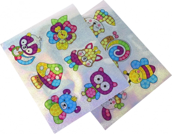 Alkotó készlet gyerekeknek, amely az állatos matricákat csillogó díszekké varázsolja. A gyémántfestésnek köszönhetően az applikátor és a tálca segítségével könnyedén készíthet színes matricákat; a csomagban 7 színű kövecske és 2 sablon található. Biztonságos kivitel CE tanúsítvánnyal és EN71 szabvánnyal, 6 éves kortól ajánlott.