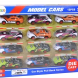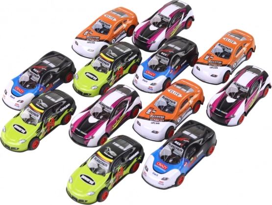 Ez a szett tizenkét stílusos sportautót tartalmaz, amelyek a lendkerekes meghajtásnak köszönhetően egy enyhe lökés után előre száguldanak. Remek választás otthoni versenyekhez, akadálypályákhoz és gyűjtői vitrinekhez. A kompakt méret megkönnyíti a megfogást a kis kezek számára, és kényelmes játékot biztosít otthon és útközben is.