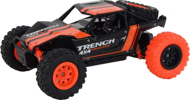 Ez a strapabíró RC terepjáró feltűnő narancssárga színben készült gyors menetre és kalandokra a szilárd burkolaton kívül is. A kompakt méretek megkönnyítik a kezelhetőséget, míg a összkerékhajtás és a masszív lengéscsillapítók kiváló tapadást és sima áthaladást biztosítanak az egyenetlenségeken.