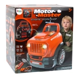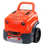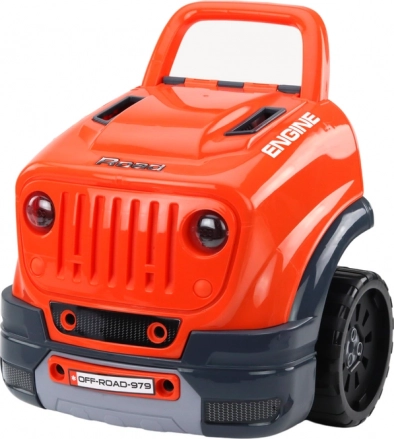 A gyerekeknek szánt barkács építőkészlet egy narancssárga kisautó, amely nemcsak játék, hanem eszköz is a mechanikai készségek és a kreativitás fejlesztésére a legkisebbeknél. Az autón számos mechanikus funkció található, amelyek lehetővé teszik a gyermek számára az alkatrészek lecsavarozását és újraösszeszerelését, serkentve a képzelőerőt és fejlesztve a kézügyességet.