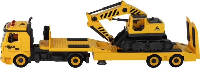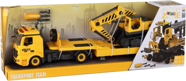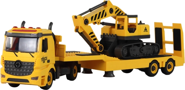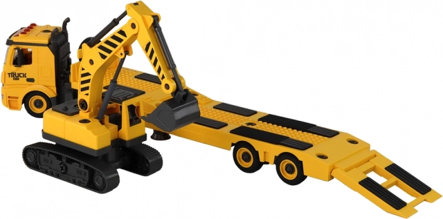 Összeszerelhető vontató teherautó lánctalpas markolóval, fényekkel és hangokkal – sárga DIY készlet