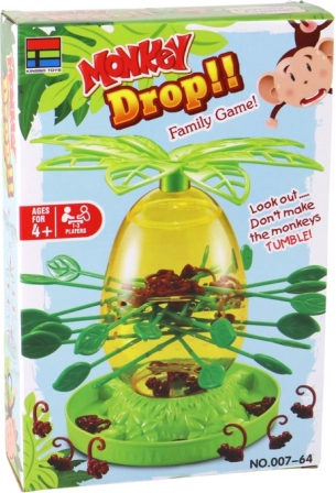 A szórakoztató családi játék, a MONKEY DROP izgalmas ügyességi kihívást kínál: húzd ki a pálmából a pálcikákat anélkül, hogy a majmok leesnének. Remek választás 3 éves kortól, fejleszti a finommotorikát, a koncentrációt és a türelmet, valamint órákon át tartó közös szórakozást nyújt 1–3 játékos számára.