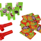 A játék előkészítéséhez össze kell állítani a maszkokat (a kaméleon mosolygós arcához felhelyezzük a gumipántokat és kinyitjuk a sípokat/nyelveket). Emellett felállítjuk a zöld (másik oldalukon piros) kártyákat, hogy függőlegesen álljanak.