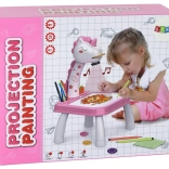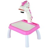 Ez a rózsaszín unikornis vetítő minden pillanatot kreatív kalanddá varázsol. A gyermek 24 kivetített sablon közül választhat, és könnyedén átrajzolhatja őket. A 4 lábnak köszönhetően a szett használható praktikus asztalként vagy fekvő rajztáblaként – ideális otthoni alkotáshoz és utazáshoz is.
