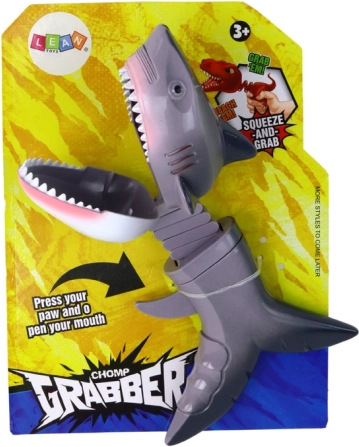 Szórakoztató rágó játék rugós cápának formázva, amely rengeteg nevetést és akciót hoz a gyerekeknek. A ravasz megnyomására az állkapocs gyorsan összecsukódik, és egy ragadozót utánoz. A játék fejleszti a finommotorikát, serkenti a képzeletet, és a masszív kialakításnak köszönhetően tartós a hosszan tartó játékhoz. 3 éves kortól ajánlott.