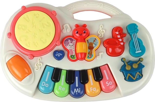 Ez a játék nemcsak szórakoztat, hanem támogatja a gyermek szenzoros, motoros és kognitív képességeinek fejlődését. A fehér dizájnú zongora pillangó motívummal nemcsak remek játék, hanem oktatási eszköz is a zenei szenvedély elősegítésére már kicsi kortól.