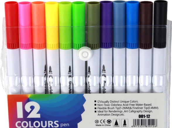 A készlet 12 kétvégű filctollat tartalmaz, amelyek lehetővé teszik a kreativitás kifejezését a legszínesebb módon. Függetlenül attól, hogy Ön profi művész vagy kezdő, a filctollaink megfelelnek az elvárásainak a minőség és változatosság terén.