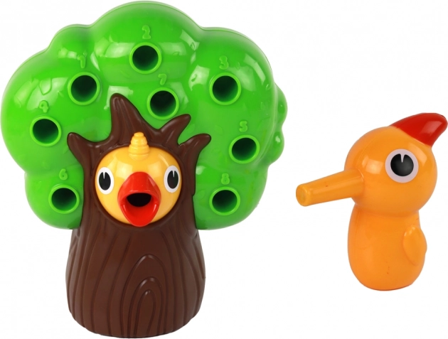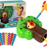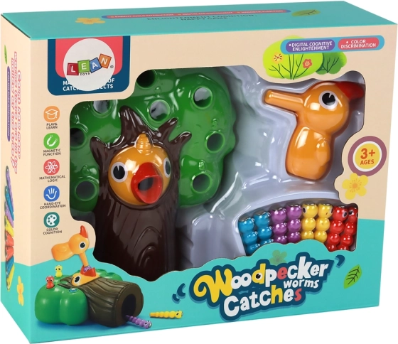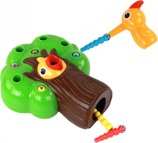 Ez a mágneses ügyességi játék a felfedezés örömét és a kulcskészségek fejlesztését nyújtja a gyerekeknek. A feladat a „madárka mamája” mágnesével kihúzni a színes kukacokat a fa nyílásaiból, és a kis, éhes fióka csőrébe áttenni őket. A tevékenység fejleszti a mozgások pontosságát, a kéz–szem koordinációt, és türelemre, valamint logikus gondolkodásra tanít.