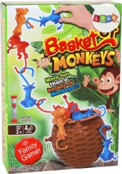 A játék könnyen variálható – próbáljatok láncot készíteni csak egy színből, vagy versenyezzetek, ki tud időn belül több majmocskát a kosárba tenni. A kosár a játék végén praktikus tárolódobozként is szolgál.