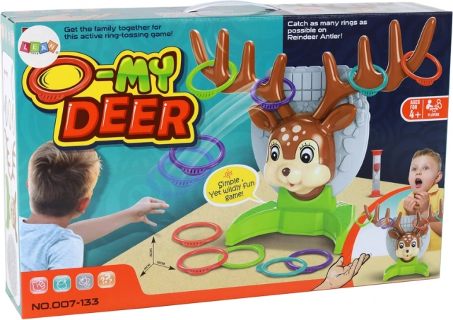 A szarvasra dobálós családi karikajáték egyszerű szabályokkal, mégis nagy szórakozással vár. Állítsátok össze a szarvast, osszátok szét a karikákat, és találjatok az agancsra – aki többet felhelyez, az nyer! A mellékelt homokórával könnyedén időzíthetők a menetek, és pörgős versennyé alakítható a játék.