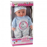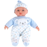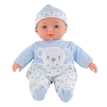 A mi babafiguránk bájos kék hálóruhát visel medvemintával, hátul praktikus tépőzárral, valamint aranyos sapkát. Tökéletes társ a legkisebbeknek. Ez a különleges baba nemcsak a kreatív játékot ösztönzi, hanem már egészen kicsi kortól tanítja a gondoskodást, a felelősséget és az odafigyelést.
