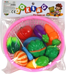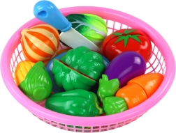 A csomagban 8 féle zöldség, egy műanyag kés és egy tányér található – minden, amire a gyerekeknek szükségük van a konyhai tevékenységek utánzásához és a „fogások” tálalásához.