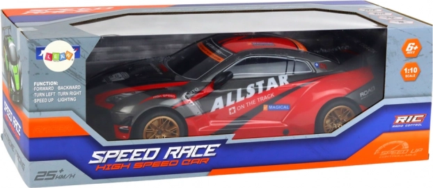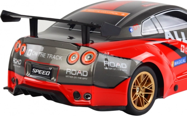 A valósághű megjelenést a piros karosszéria és az arany felnik hangsúlyozzák, amelyeket fényhatások tesznek még látványosabbá, különösen szürkületben. A csomagban 7,4 V-os újratölthető akkumulátor és USB töltőkábel található, így gyorsan visszatérhetsz a pályára.