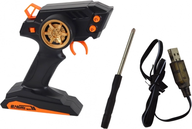 Pisztolymarkolatos kormányos távirányító 2,4 GHz frekvencián stabil hatótávot, gondtalan manőverezést és zavarmentes működést nyújt.