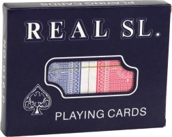 REAL SL játék kártyák kivételes játékélményt nyújtanak két klasszikus formátumú csomaggal. A kártyák minőségi kartonból készültek, szénbetéttel és lakkozottak a kiváló csúszás és alacsony nedvszívás érdekében.