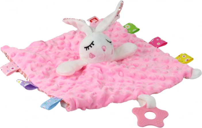 A praktikus funkciók közé tartozik a nyuszi fején található hurok, amely lehetővé teszi az egyszerű rögzítést a kiságyhoz, babakocsihoz vagy autósüléshez, így a játék mindig elérhető marad.